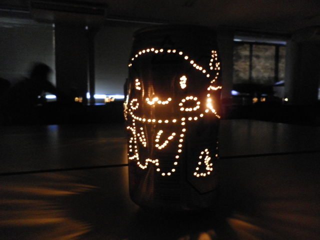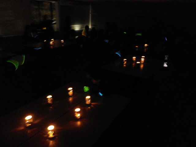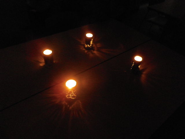 アルミ缶を画鋲で穴を開けて、その中にロウソクを入れて灯す